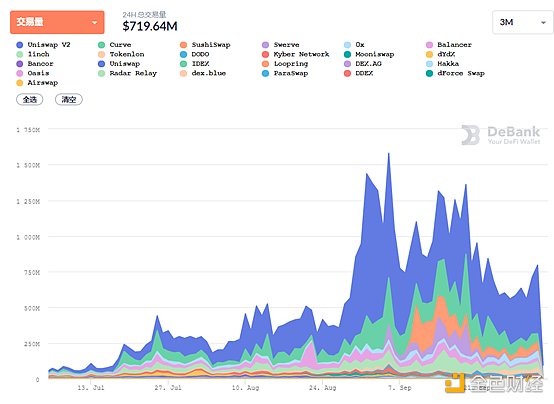 2.去中心化交易所的交易量:7.19亿美元